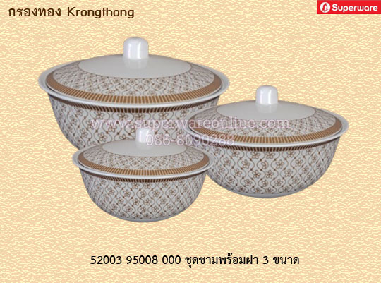 ชุดชามพร้อมฝา 3 ขนาด ลายกรองทอง