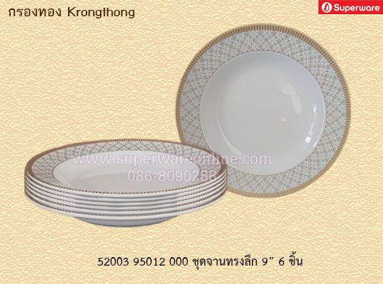 ชุดจานทรงลึก 9 นิ้ว 6 ชิ้น ลายกรองทอง