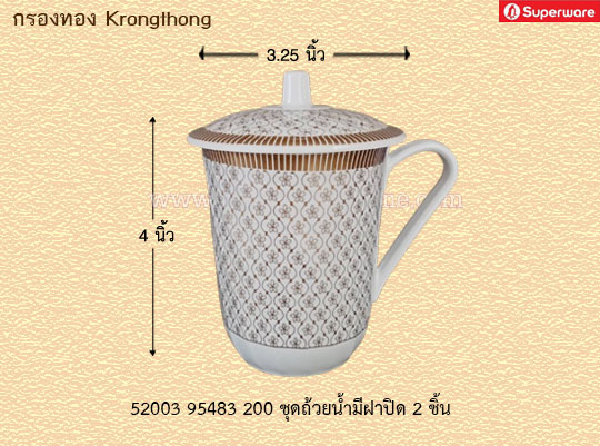 ชุดถ้วยน้ำมีฝาปิด 2 ชิ้น ลายกรองทอง