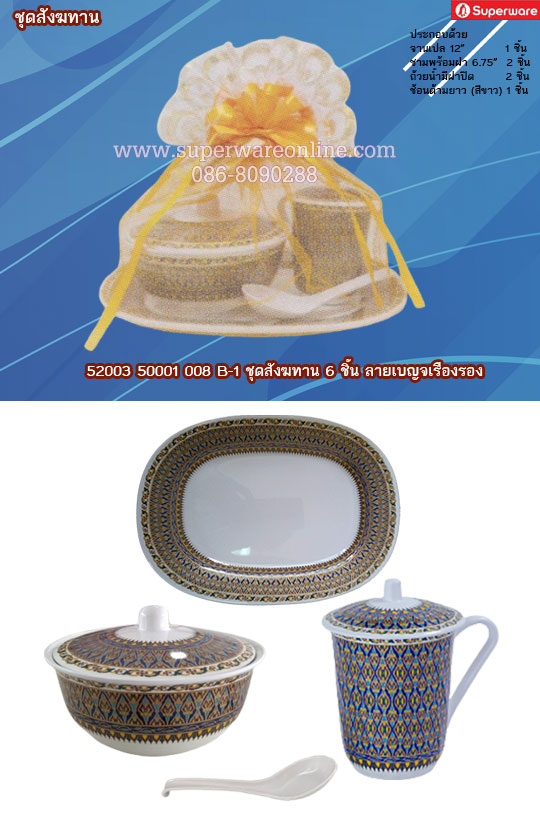 B-1 ชุดสังฆทาน 6 ชิ้น ลายเบญจเรืองรอง