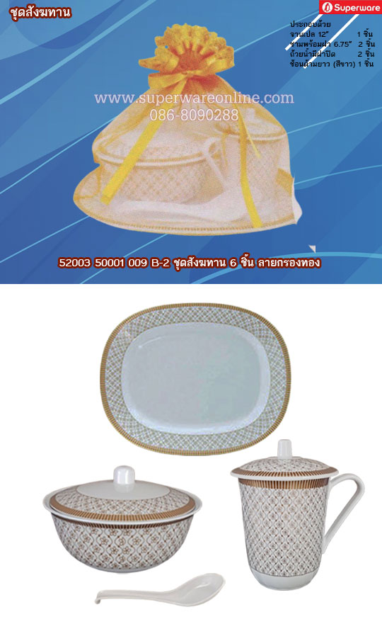 B-2 ชุดสังฆทาน 6 ชิ้น ลายกรองทอง